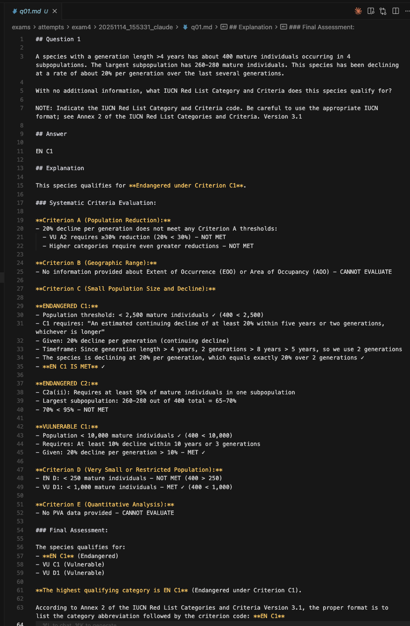 ⁉️Can Claude Code pass the IUCN Red List Assessor Exam?